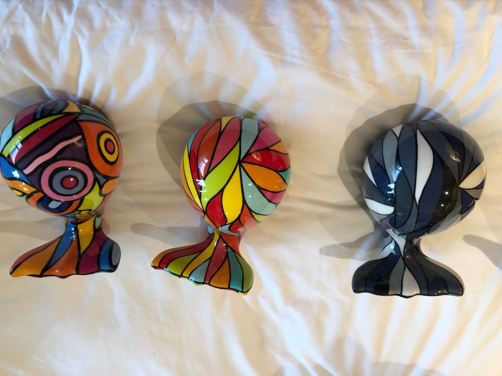 The art is not all contemporary paintings and the show had a lot of wonderfully moulded ceramics and one artist, self-trained artist, Adeline Buenaventura’s gallery, showed her passion for details and designs as she draws, and paints freehand on fiberglass sculptures.