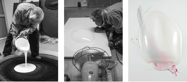 From the early 1960s until the 1970s Matsutani was a key member of the influential post-war Japanese art collective, the Gutai Art Association. As part of the group, Matsutani experimented with vinyl glue, using fans and his own breath to manipulate the substance, creating bulbous and sensuous forms. By working closely with the material, this approach embodied an important aspect of Gutai: letting material and spirit work in conjunction with one another to create something new.