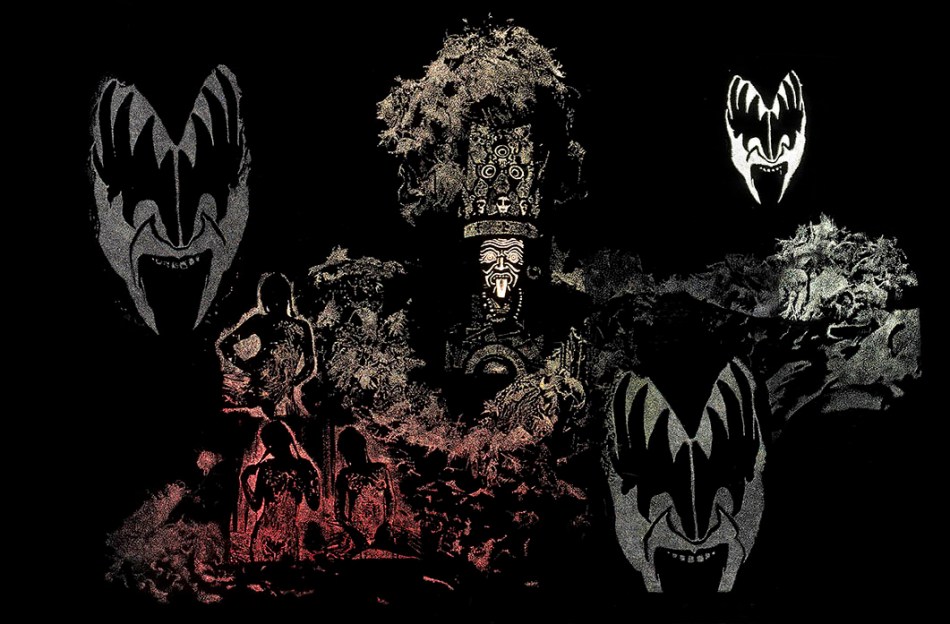 In Dorge Drakkten Kiss World (2012), for instance, Lamdark juxtaposes the Tibetan Nechung Oracle with Dorje Drakden and Gene Simmons, all three of whom stick out their tongues. Whilst this gesture is seen as a sign of rebellion in the Anglo-Saxon world, Tibetans use it to greet one another as a sign of respect. The work is a micro-pointillist light box – in which tiny holes are hammered directly into the image – a medium for which the artist has become known. He likens the repetitive sound of the hammering to ‘the drumbeat, the heartbeat…similar to the sound of a monk making a sand mandala’ and describes the process of making a light mandala as ‘releasing with needles light to go through’.